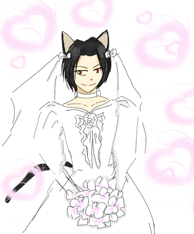 ウエディングドレスの格好で猫耳を装着している高尾というお題が出ました。