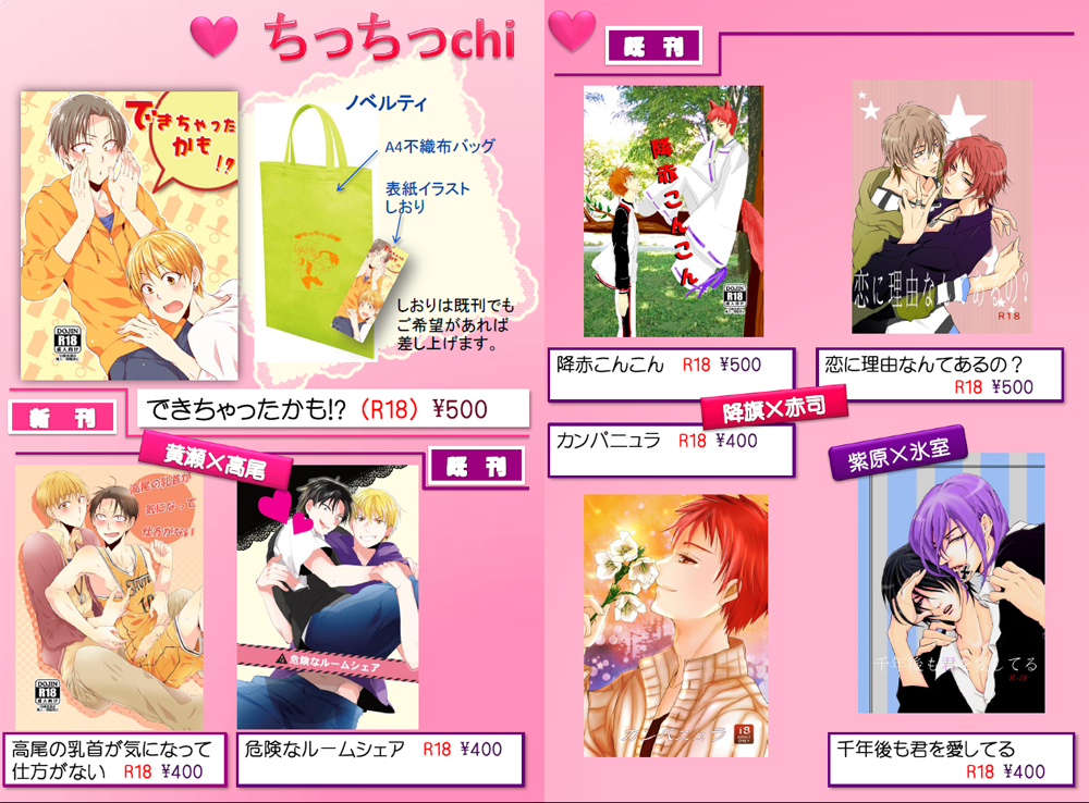 あと、夏コミの黄高バッグとしおりが余っていますので